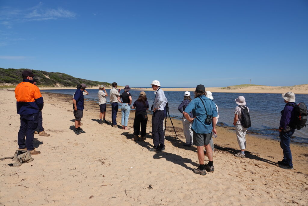 Representatives from Bunurong Land Council Aboriginal Corporation, BirdLife Australia, Bass Coast Landcare Network, South Gippsland Landcare Network, Parks Victoria, Bass Coast Shire Council and the community shared updates on the part they are playing to protect Hooded Plovers (affectionately known as hoodies) along the coastline from San Remo to Sandy Point. This area is home to Victoria’s second largest population of Hooded Plovers so it’s vital that we work together to take action to protect this vulnerable species.